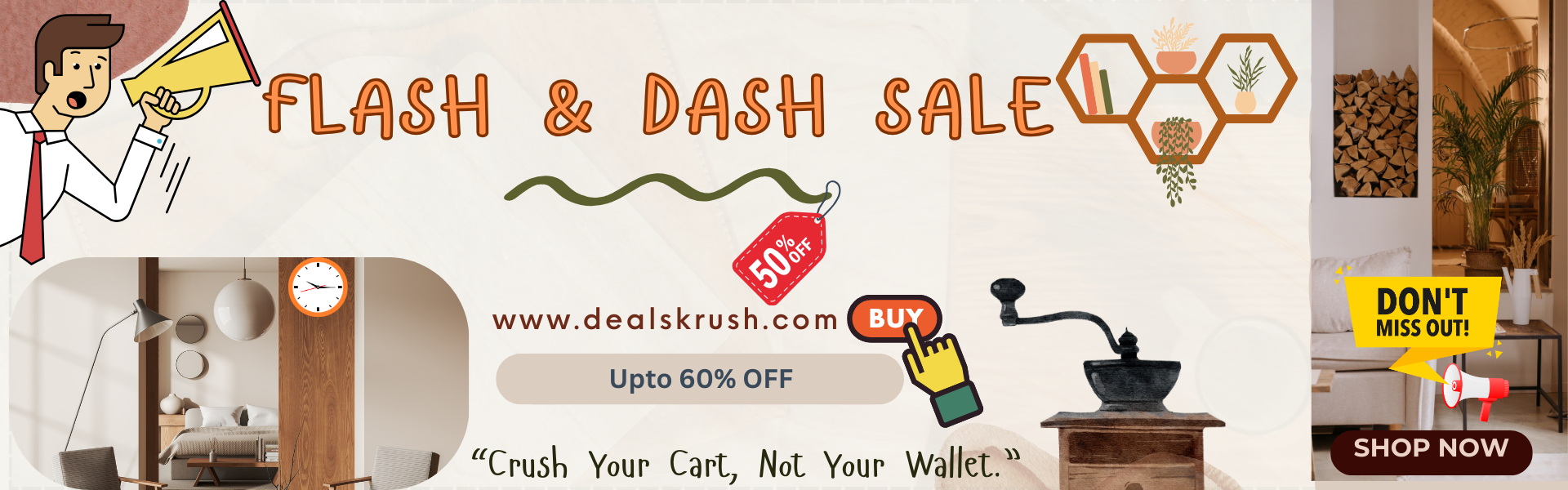 "Don’t wait—these exclusive deals are only available for a limited time! From 50% off tech gadgets to buy-one-get-one-free fashion finds, DealsKrush brings you savings that make every purchase feel like a steal. Check back daily for new discounts!".